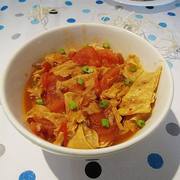 番茄、腐竹、猪肉、油、盐、胡椒粉、白糖、番茄酱、蚝油。