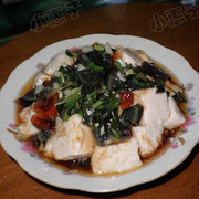 豆腐、皮蛋、葱、盐、鸡精、生抽、麻油、油。