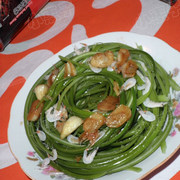 蒜苗、虾米、蒜、盐、糖、白醋、生抽、鸡精、油。