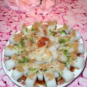 夜开花、虾米、榨菜丝、葱、油、盐、鸡精。