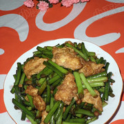蒜苗、鸡蛋、老抽、盐、鸡精、油。