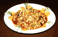 蜗牛肉、腰果、生姜、生粉、红油、豆瓣酱、干红辣椒、大蒜、冬笋、绍酒、湿淀粉、白糖、味精、盐、葱。