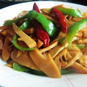 腐竹、春笋、木耳、盐、油、糖、花椒、老抽、生抽、姜丝。