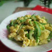 丝瓜、鸡蛋、盐、油、料酒、蒜。