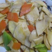 杏鲍菇、胡萝卜、尖椒、大豆油、酱油、盐、十三香、味精。