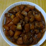 猪心肺、土豆、姜、蒜、八角、花椒、干辣椒、葱、盐、鸡精、醋、老抽、料酒。