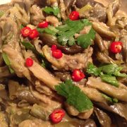 茄子、麻酱、海鲜酱油、蒜泥、香菜、泰椒。