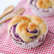 高粉、糖、盐、水、蛋液、黄油、干酵母、紫薯泥。