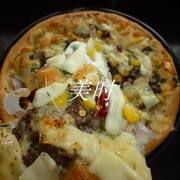 高粉、黄油、酵母粉、糖、牛肉、马苏里拉奶酪、黑胡椒粉、玉米粒、豌豆、洋葱、盐、油、披萨草。