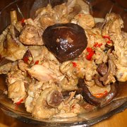 鸡肉、干香菇、小葱、生姜、干辣椒、酱油、冰糖、盐、料酒、食用油、大料。