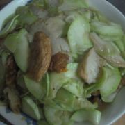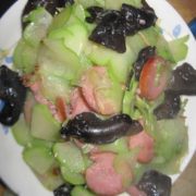 佛手瓜、酒香肠、木耳、葱、姜。
