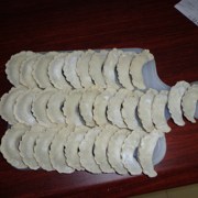 韭菜、猪肉、饺子皮、五香粉、盐、酱油、香油。