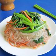 菠菜、胡萝卜、干粉丝、香油、辣椒油、盐、胡椒粉、大蒜、醋、白糖、味极鲜。