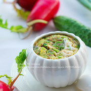 虾酱、鸡蛋、葱。