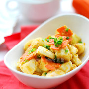 茭白、咸鸭蛋、胡萝卜、小葱、盐、鸡精、香油。