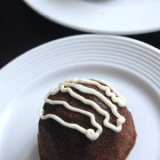 蛋清、细砂糖、低粉、可可粉、杏仁粉、熔化黄油、巧克力豆、装饰巧克力。