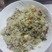 米饭、香肠、鸡蛋、青菜、米葱、盐、色拉油。