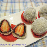 糯米粉(饼皮)、清水(饼皮)、绵白糖(饼皮)、红小豆(内馅)、冰糖(内馅)、中等大草莓、椰蓉。