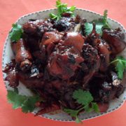 小笨鸡、葱、姜、大料、干红辣椒、酱油、老抽、盐。