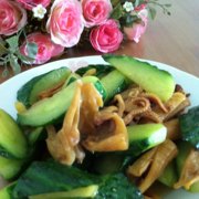 黄瓜、鱿鱼干、生姜、酱油、蚝油、糖、盐。
