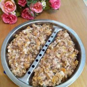 猪前腿五花肉、甜梅菜、生粉、蚝油、糖。