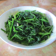 红薯叶、青椒、蒜末、玉米油、盐、鸡精。