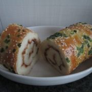 高粉、干酵母、奶粉、全蛋液、盐、细砂糖、玉米油、水、芝麻、香葱末、肉松、沙拉酱。