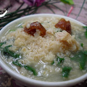 麦片、烧猪肉、菜心、水、酱油、盐。