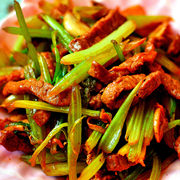 西芹、牛肉、姜丝、蒜片、盐、糖、味精、胡椒粉、淀粉、酱油、料酒。