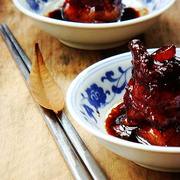 猪五花肉、生姜、干山楂、黄酒、老抽、冰糖。