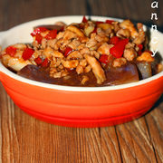 茄子、肉末、红椒、蒜、料酒、酱油、盐、白糖、油。