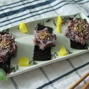 黑米、糙米、红米、炒香白芝麻、即食紫菜、虾仁菜脯、盐。