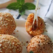 甘薯、马拉里拉芝士碎、炒香白芝麻、糯米粉。