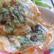 速冻飞饼、长白萝卜、大红肠、虾米、香葱、黑芝麻鸡蛋液、盐、麻油、白胡椒粉。