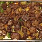 3A级安格斯小牛仔骨、土豆、甜椒、洋葱、胡萝卜、黑椒酱。