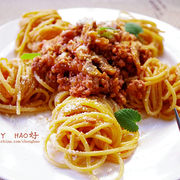 意大利面、猪肉、洋葱、番茄酱、口蘑、橄榄油、蒜、盐、砂糖、料酒、水、奶酪粉。