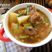 肉骨、土豆、黄豆酱、大葱、干红辣椒、八角、生姜、白酒、盐、白糖、胡椒粉。