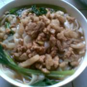 鲜面条、肉末、小青菜、葱、姜、大喜大烤肉酱、老抽、盐、十三香。
