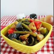 土豆、芸豆、西红柿、茄子、青辣椒、蒜、酱油、盐、豆瓣酱、花椒、八角。