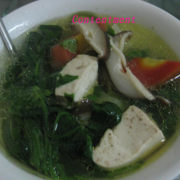 鸡大腿、白萝卜、红萝卜、香菇、菠菜、香菜、豆腐、海带丝。