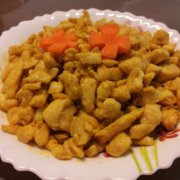 鸡胸肉、料酒、生粉、盐、咖哩粉、糖、味精。
