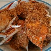 梭子蟹、面包糠、白酒、盐、葱、姜、蒜、淀粉。