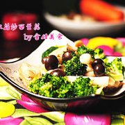 蟹味菇、白玉菇、西兰花、葱姜、淀粉、水、胡萝卜、蚝油、食盐、淀粉。