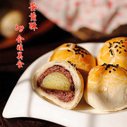 面粉、猪油、豆沙馅、咸蛋黄、料酒、黑芝麻、蛋黄液、水、白糖。