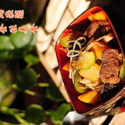 酱牛肉、角瓜、青椒、土豆、豆芽、南瓜、蘑菇、香菇。
