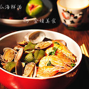 丝瓜、蛤蜊、大虾、葱、姜末。