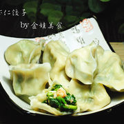 猪前轴肉、饺子粉、韭菜、活虾、鸡蛋、水。