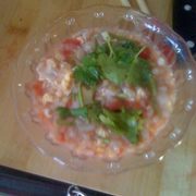 西红柿、鸡蛋、面粉、香葱、香菜、姜丝、水、盐、鸡精、十三香。