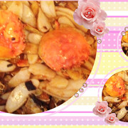 大闸蟹、年糕、葱、姜、蒜、食用油、酱油、蟹醋、料酒、糖、韩国辣酱。