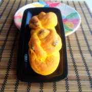 南瓜泥、牛奶、蜂蜜、糖、盐、高筋粉、酵母、黄油、葡萄干。